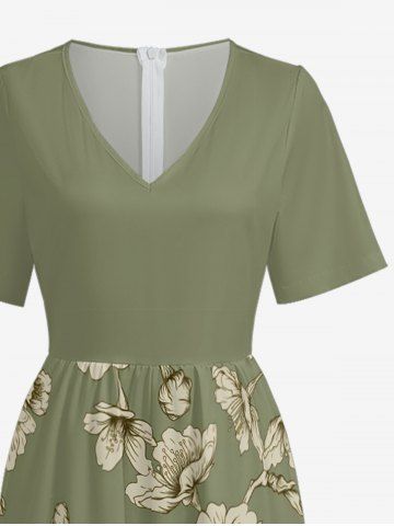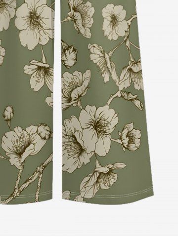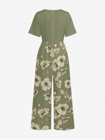 Flower Print Hawaii Wide Leg Jumpsuit - Vert Clair - Vert Clair