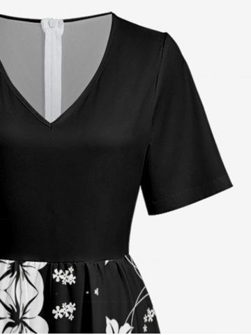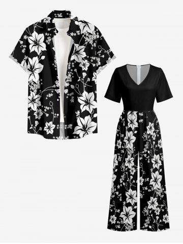 Flower Print Hawaii Wide Leg Jumpsuit - Noir - Noir