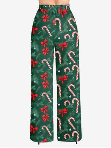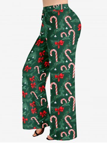 Pantalon à jambes larges avec cordon de serrage et imprimé nœud papillon de Noël pour femmes grandes tailles - Vert Profond - M