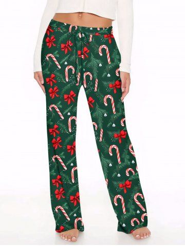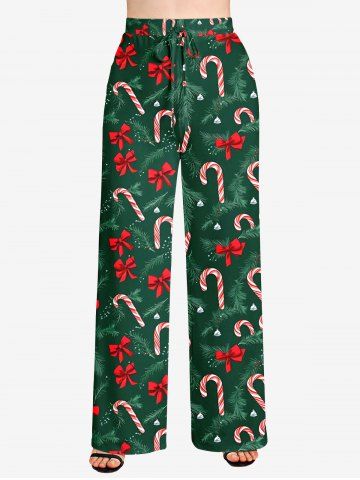 Pantalon à jambes larges avec cordon de serrage et imprimé nœud papillon de Noël pour femmes grandes tailles - Vert Profond - 1x