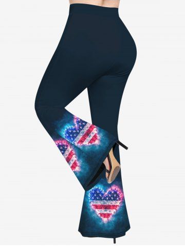 Pantalons Graphiques > Pantalon Evasé Drapeau Américain Cœur Imprimé de Grande Taille à Paillettes