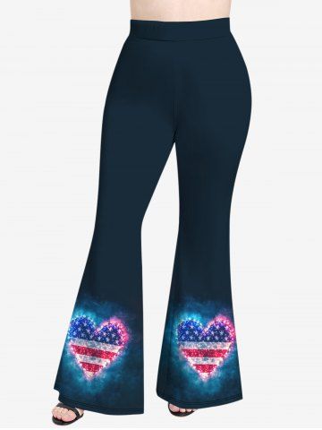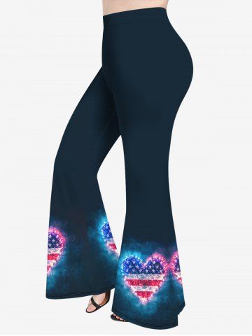 Pantalons Graphiques > Pantalon Evasé Drapeau Américain Cœur Imprimé de Grande Taille à Paillettes