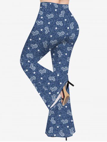 Pantalons Graphiques > Pantalon Évasé en Jean à Imprimé Etoiles et Cœurs Grande-Taille