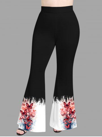 Pantalons Graphiques > Pantalon évasé grande taille à imprimé floral et papillon aquarelle ombré