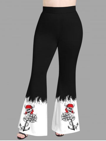 Pantalon Évasé Imprimé Crâne de Pirate avec Chaîne Grande Taille - Noir - Noir