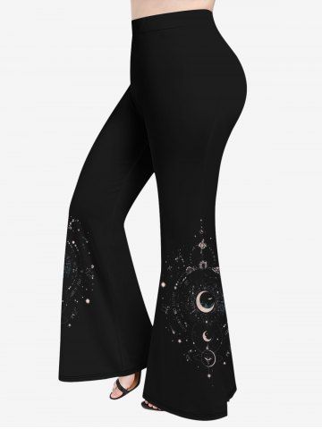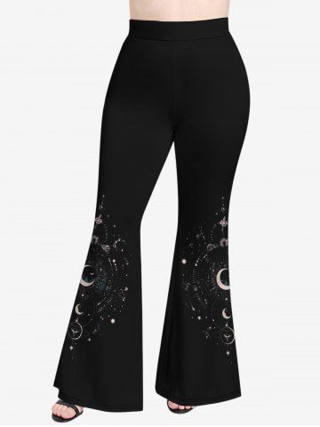 Pantalon évasé imprimé galaxie lune soleil étoiles grande taille - Noir - Noir