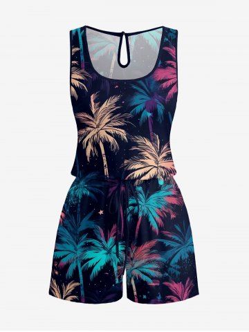 Pantalons Graphiques > Plus Size Coconut Tree Galaxy Print Hawaii Drawstring Pocket Romper