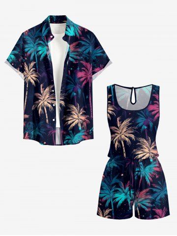 Pantalons Graphiques > Plus Size Coconut Tree Galaxy Print Hawaii Drawstring Pocket Romper