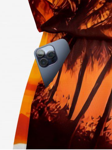 Plus Size Coconut Tree Ombre Dusk Print Hawaii Drawstring Pocket Romper - Orange Foncé - 4x