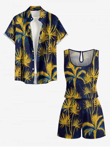 Pantalons Graphiques > Plus Size Coconut Tree Plant Print Hawaii Drawstring Pocket Romper