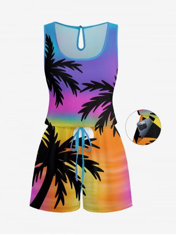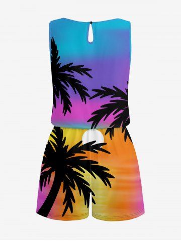 Pantalons Graphiques > Plus Size Coconut Tree Sun Ombre Print Cinched Hawaii Romper
