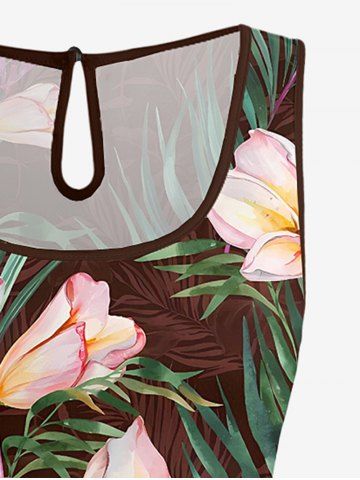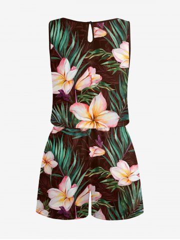 Plus Size Flowers Tropical Leaf Print Cinched Hawaii Romper - Café Profond - 4x