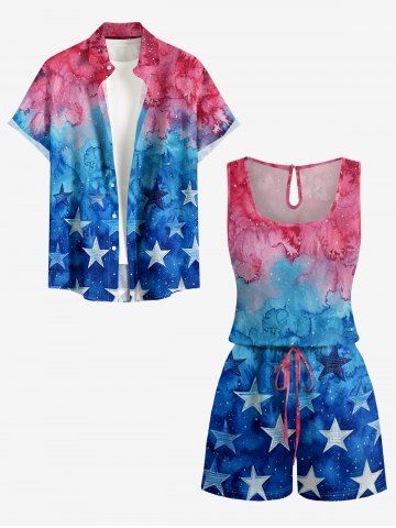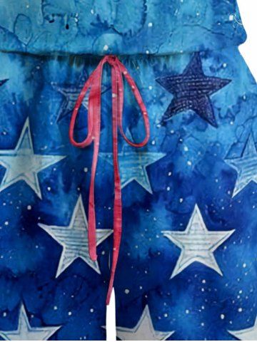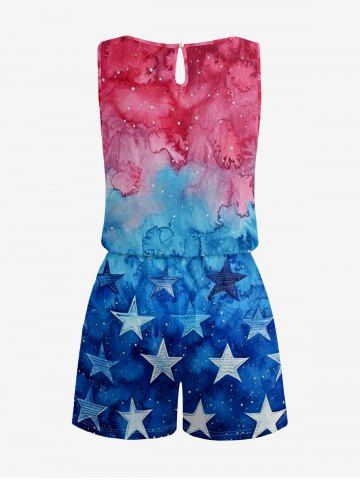 Pantalons Graphiques > Plus Size Patriotic American Flag Tie Dye Ombre Print Drawstring Pocket Romper