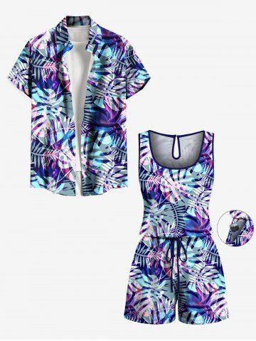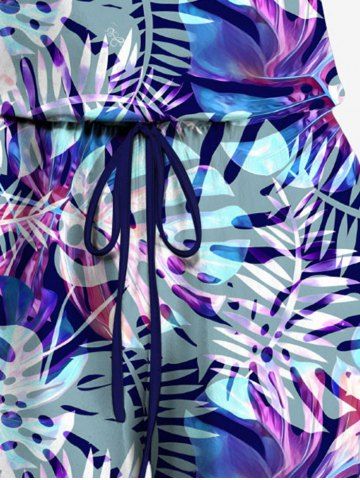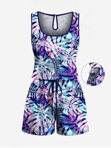 Pantalons Graphiques > Plus Size Tropical Leaf Print Cinched Hawaii Romper