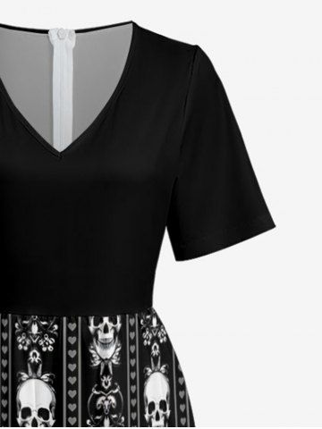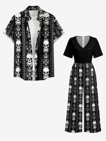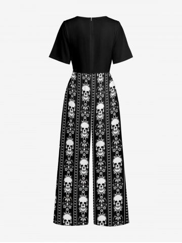 Skull Heart Striped Print Wide Leg Jumpsuit - Noir - Noir