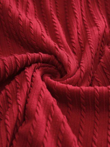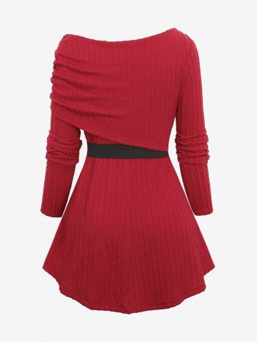 Haut Rétro Côtelé Texturé à Une Epaule Bouclé en Couleur Unie Grande Taille avec Chaîne - Rouge Foncé - L | Us 12