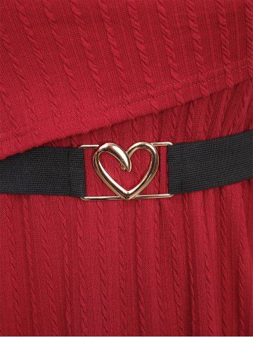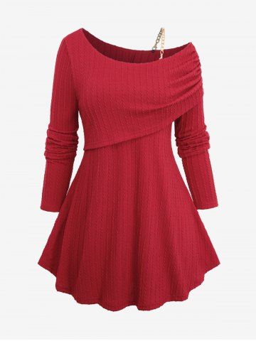 Haut Rétro Côtelé Texturé à Une Epaule Bouclé en Couleur Unie Grande Taille avec Chaîne - Rouge Foncé - 4x | Us 26-28