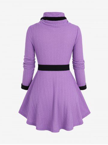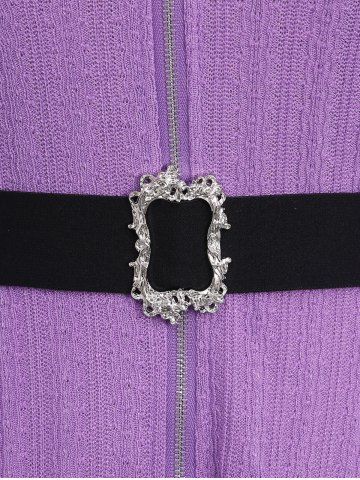 Haut Tricoté Zippé Texturé Bouclé à Ourlet en Fourrure Grande Taille à Manches Longues - Pourpre - Pourpre