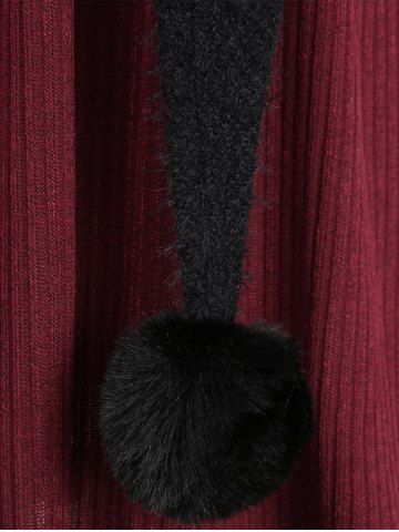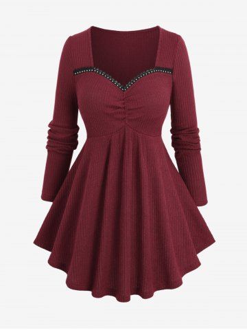 Pull Cape à Capuche Côtelé Texturé de Grande Taille à Ourlet en Dentelle avec Rivet et Col en Forme de Cœur - Rouge Foncé - M | Us 10