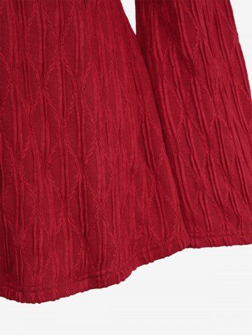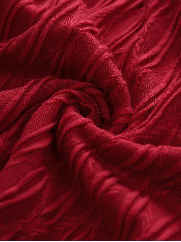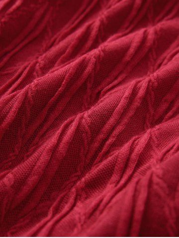 Pull Texturé Fendu Bouclé Grande Taille Manches Courtes à Col Relevé - Rouge Foncé - 2x | Us 18-20