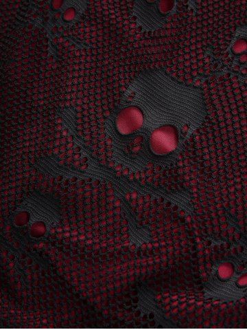Robe Asymétrique Gothique Haute Basse Crâne Panneau en Dentelle à Lacets Grande Taille avec Rivet - Rouge Foncé - L | Us 12