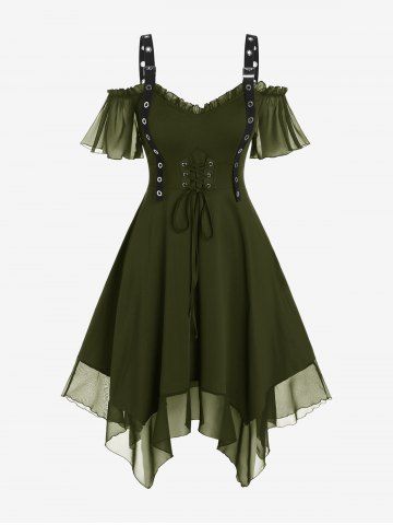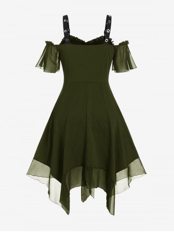 N*****e5Gothic Plus Size Cold Shoulder Lace Up Grommet Handkerchief Chiffon Asymmetric DressColor: BLACK Size: S | US 8I felt for the price, it was a good product. The material is soft and stretchy, plus it’s super forgiving. it’s cute and comfy.