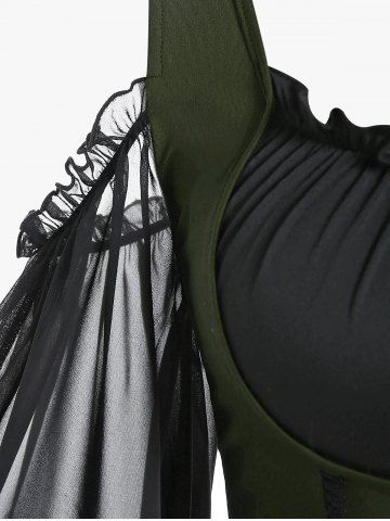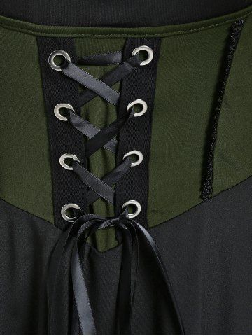 Robe Alternative Et Gothique > Robe Corset Haute Basse Epaule Dénudée à Manches Evasées de Grande Taille à Lacets à Volants