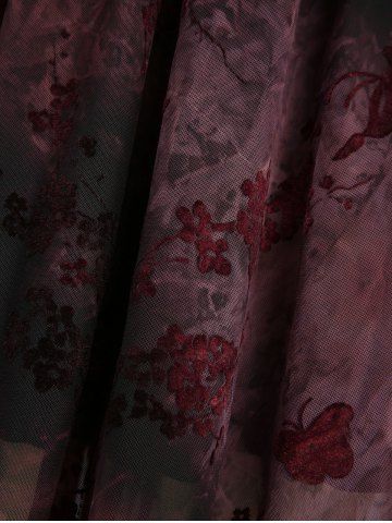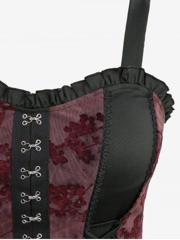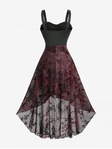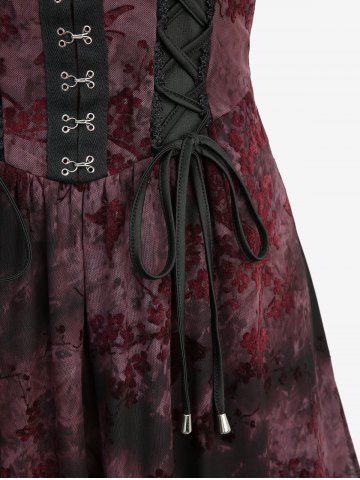 Robe débardeur gothique grande taille à lacets, motif fleur de prune, volants floqués, bordure en dentelle, taille haute et basse - Rouge Foncé - 5x | Us 30-32