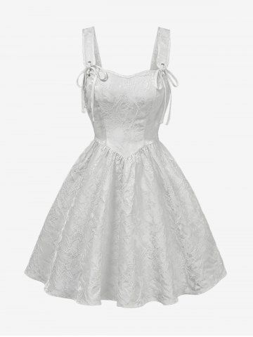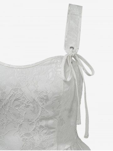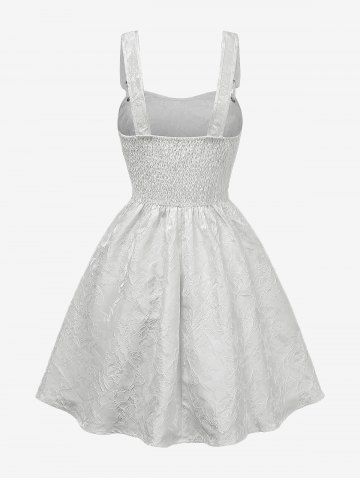 Robe débardeur trapèze à dos froncé en jacquard à fleurs gothiques - Blanc - Blanc