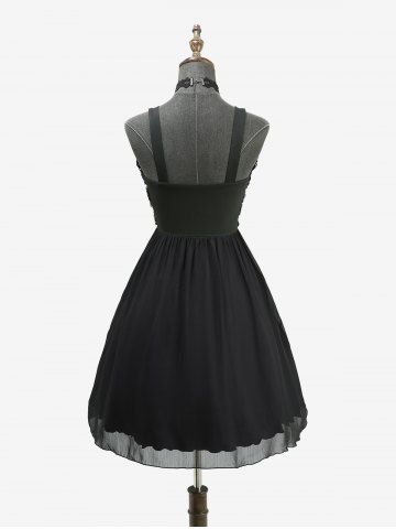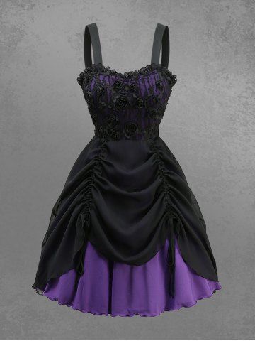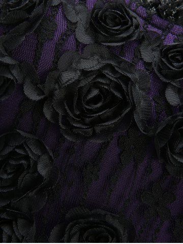 Robe Alternative Et Gothique > Robe débardeur trapèze en mousseline texturée à empiècements de dentelle et fleurs de rose gothique