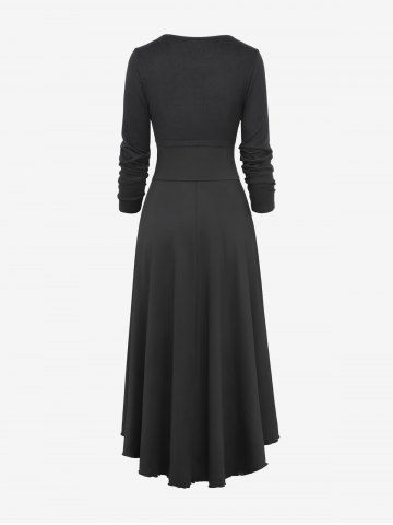 Robe Ligne A Gothique Haute Basse Panneau Fleuri à Bretelle Bouclée et Haut Court - Noir - Noir