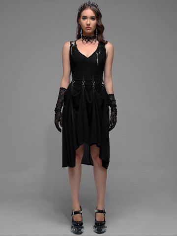 Robe Alternative Et Gothique > Robe Mi-Longue Gothique Teinté Panneau Au Crochet sans Manches