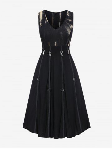 Robe Alternative Et Gothique > Robe Mi-Longue Gothique Teinté Panneau Au Crochet sans Manches