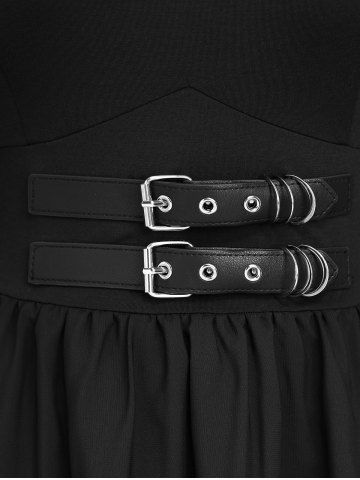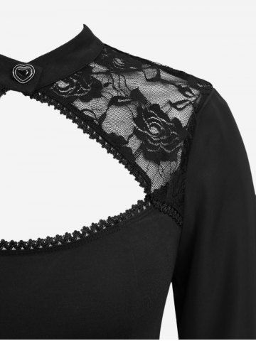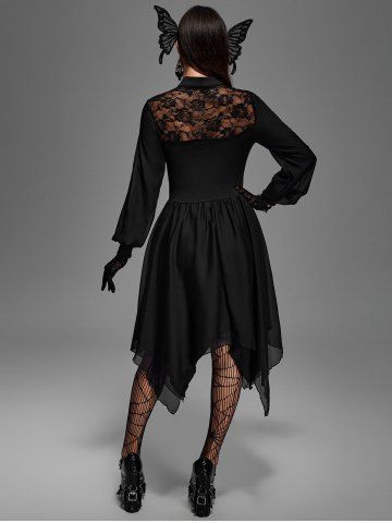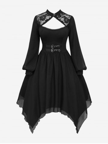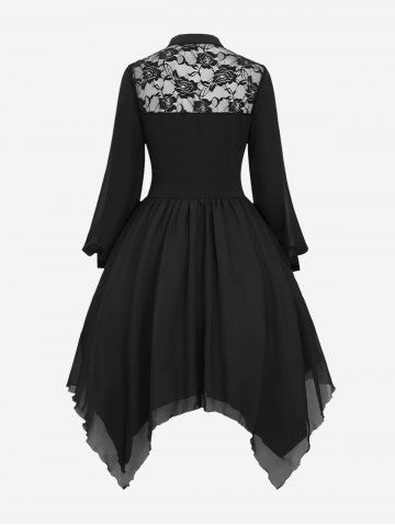 Robe Mouchoir Gothique Superposée Découpée Fleurie Panneau en Dentelle en Mousseline - Noir - Noir