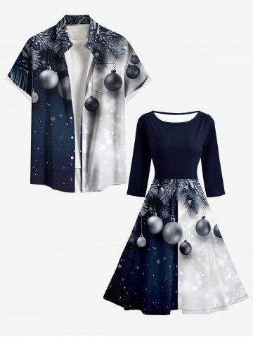 Christmas Ball Snowflake Colorblock Printed Midi 50's Vintage A Line Dress - Noir - Noir