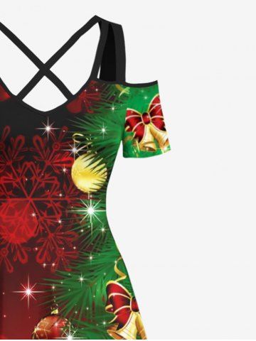 Maxi Robe Croisée Etoile Sapin de Noël et Cloche Imprimés de Grande Taille - Multi-a - 3x