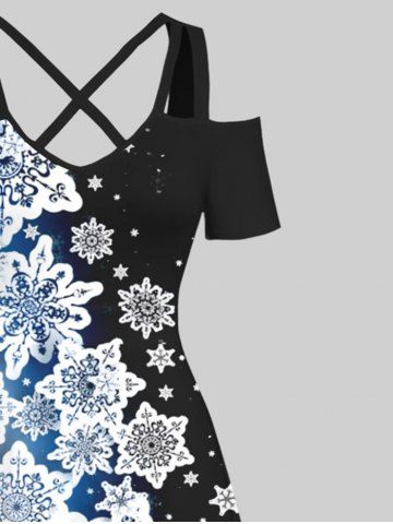 Robes > Maxi Robe Ligne A Croisée Ombrée Flocon de Neige de Noël Imprimé de Grande Taille