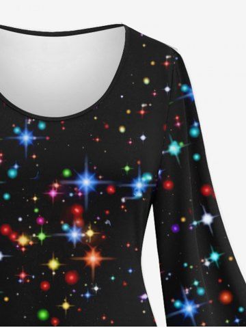 Plus Size Sparkling Glitter Light Christmas Tree Printed A Line Dress - Bleu - Bleu