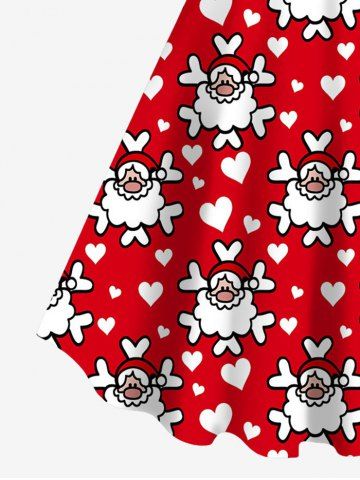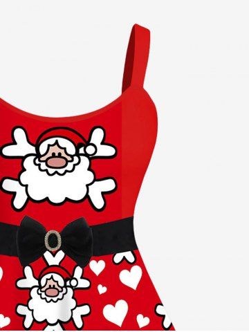 Robe à Bretelle 3D Père Noël et Flocon de Neige Imprimés de Grande Taille avec Nœud Papillon - Rouge - Rouge