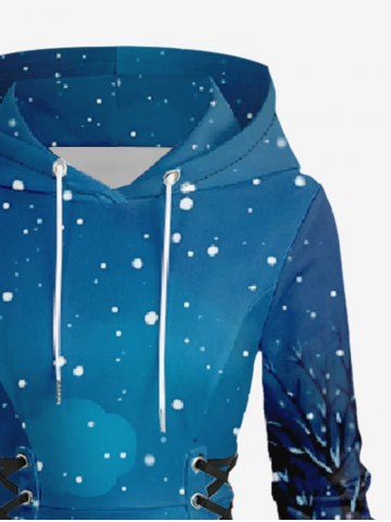Robe à capuche grande taille avec imprimé bonhomme de neige et flocons de neige, lacée et à cordon de serrage - Bleu Marine - Bleu Marin
