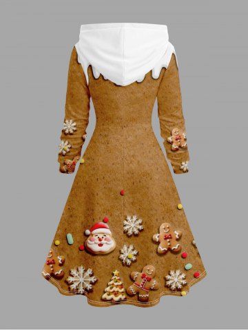 Robes > Robe à capuche grande taille avec imprimé sapin de Noël, pain d'épice, flocons de neige et Père Noël, laçage et cordon de serrage