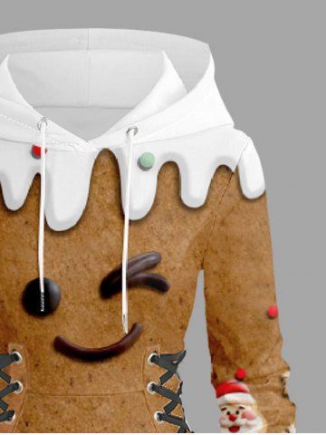Robe à capuche grande taille avec imprimé sapin de Noël, pain d'épice, flocons de neige et Père Noël, laçage et cordon de serrage - Brun Légère - Marron Clair