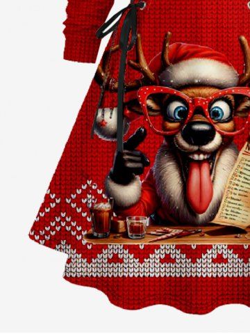 Robe à capuche trapèze à imprimé 3D de cerf de Noël grande taille - Rouge - Rouge