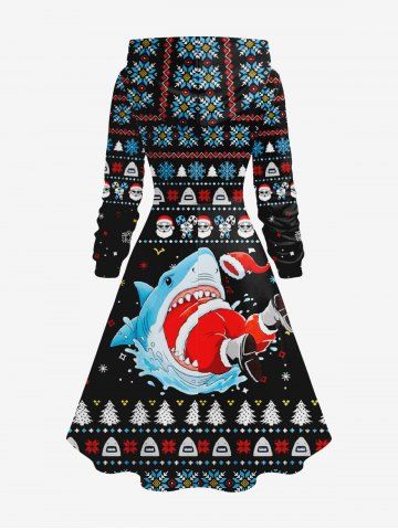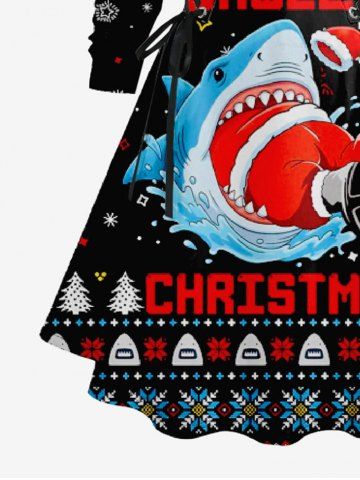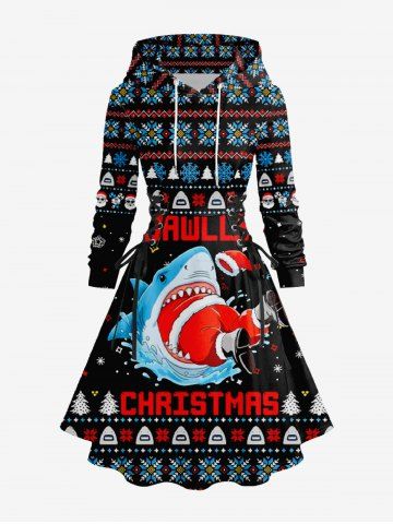 Robe à capuche trapèze à lacets, imprimé sapin de Noël, flocons de neige et requin, grande taille - Noir - Noir
