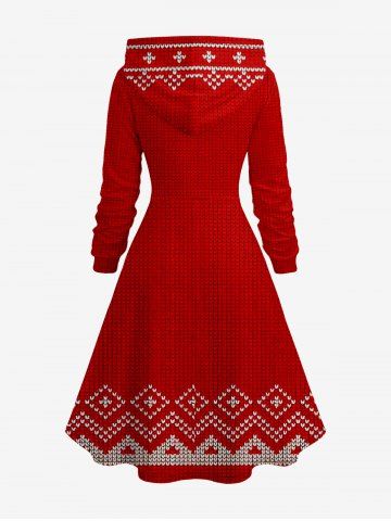 Robe à capuche trapèze en maille 3D imprimée avec un cerf, grande taille - Rouge - Rouge
