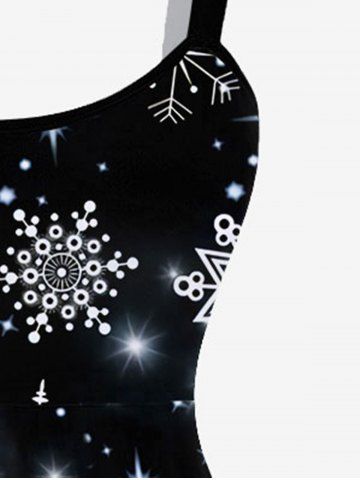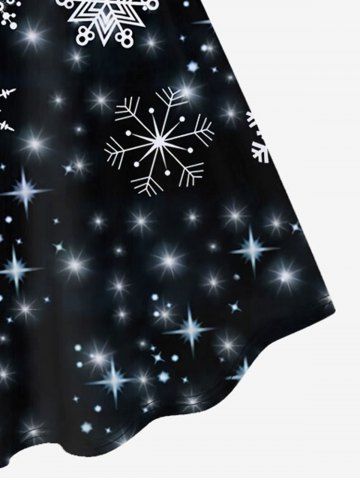 Robe de Soirée Ligne A Brillante Flocon de Neige et Galaxie Imprimés de Grande Taille - Noir - Noir