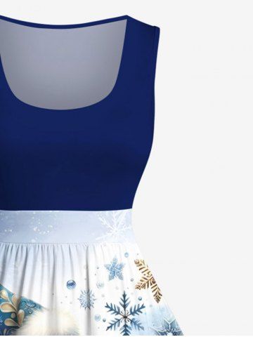 Robe de Noël Trapèze Ligne A Ombré Père Noël et Flocon de Neige Imprimés de Grande Taille - Bleu - Bleu