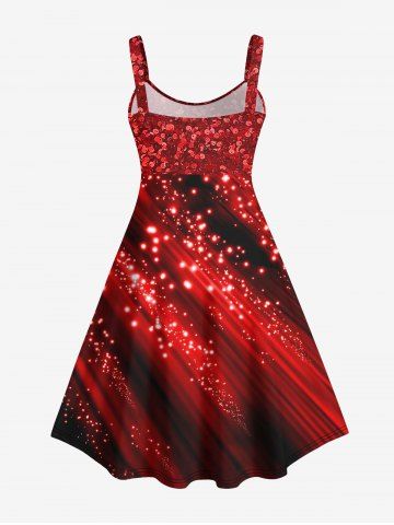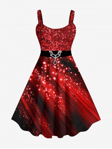Robe de Soirée Bouclée 3D Paillettes à Manches Longues Grande Taille - Rouge - Rouge