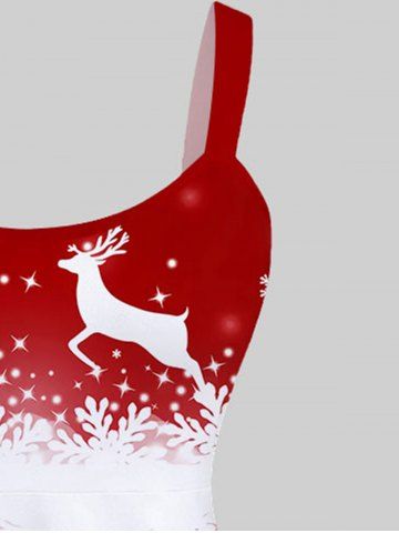 Robe Débardeur en Blocs de Couleurs 3D Flocon de Neige et Sapin de Noël Imprimé de Grande Taille à Paillettes - Rouge - Rouge