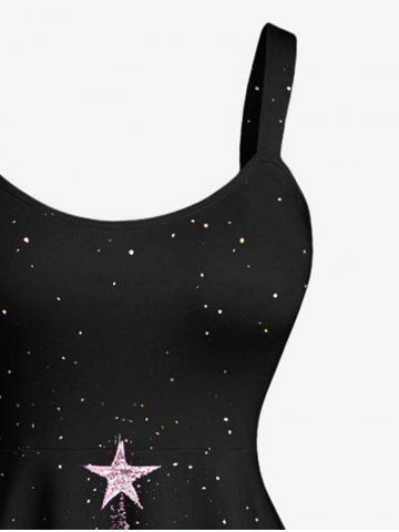 Robe débardeur grande taille à imprimé 3D motif sapin de Noël, galaxie, étoiles et paillettes - Noir - Noir